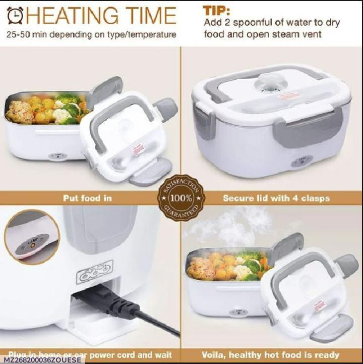 Enjoy Your Meals On The Go With This Electric Heating Lunch Box. Perfect For School, Office, And Travel, It Features Stainless Steel Compartments And Comes With A Spoon For Convenience.