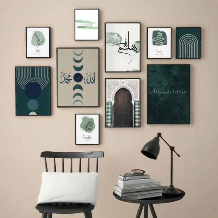 Wooden Islamic Calligraphy Wall Art Frame Set of 10 | Elegant Multi-Size Frames for Home, Office & Prayer Room Décor – Premium Quality Wooden Artwork